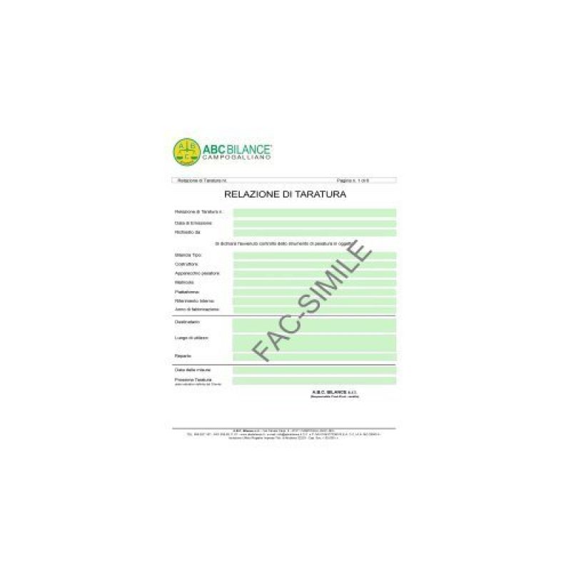 Relazione di taratura come previsto dal ns sistema qualità UNI EN ISO 9001:2015 effettuata da ns. personale tecnico specializzato, compilato in lingua italiana.
